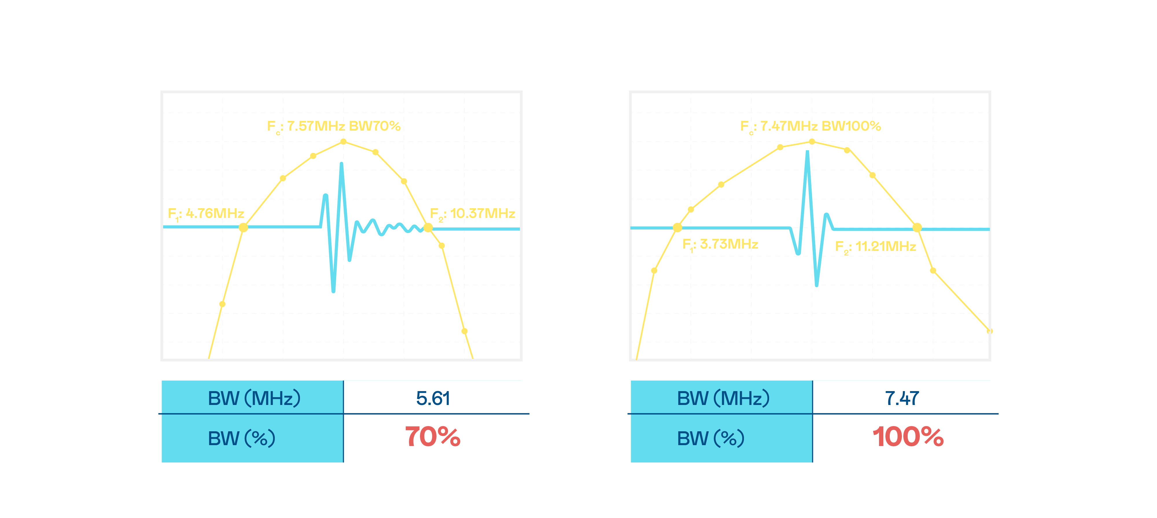 超音波影像的解析度高低,首先取决于探头能发出的讯号频宽。尊龙凯时 CMUT 可提供高清晰的超音波讯号,提供高频宽、高灵敏度、影像纹理细节更高的超音波影像,协助医护人员缩短影像判读时间及利用精准的医疗影像进行诊断。